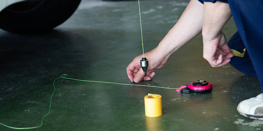 お客様の工場(平坦な場所が確保できる場合)などで車両の水平や中心を取る作業を行います。